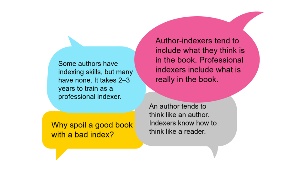 An interesting question that comes up from time to time is ‘Surely the best person to write the index is the author of the book?’ Here’s what we say to that:
